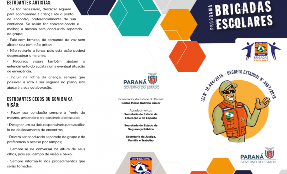 A Secretaria de Estado da Educação e do Esporte, juntamente com a Defesa Civil e a Secretaria de Estado da Justiça, Família e Trabalho, lançou hoje (2) a cartilha do Programa Brigadas Escolares - Defesa Civil na Escola.