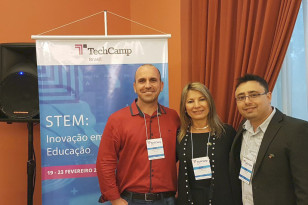 O diretor de Políticas e Tecnologias Educacionais da Secretaria de Estado da Educação, Eziquiel Menta, e os professores Sarita Maria Pieroli, de História, e Edson Pedro Schiehl, de Matemática, participam nessa semana do programa STEM TechCamp BRASIL 2018 promovido pelo governo dos Estados Unidos.