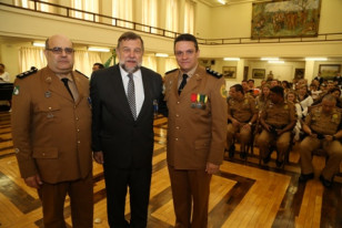 16:50 Flávio Arns recebe homenagem da Patrulha Escolar em Curitiba O vice-governador e secretário de Estado da Educação, Flávio Arns, foi homenageado nesta quarta-feira (26) com as medalhas de mérito do Batalhão da Patrulha Escolar Comunitária e do Programa Educacional de Resistência às Drogas e à Violência.