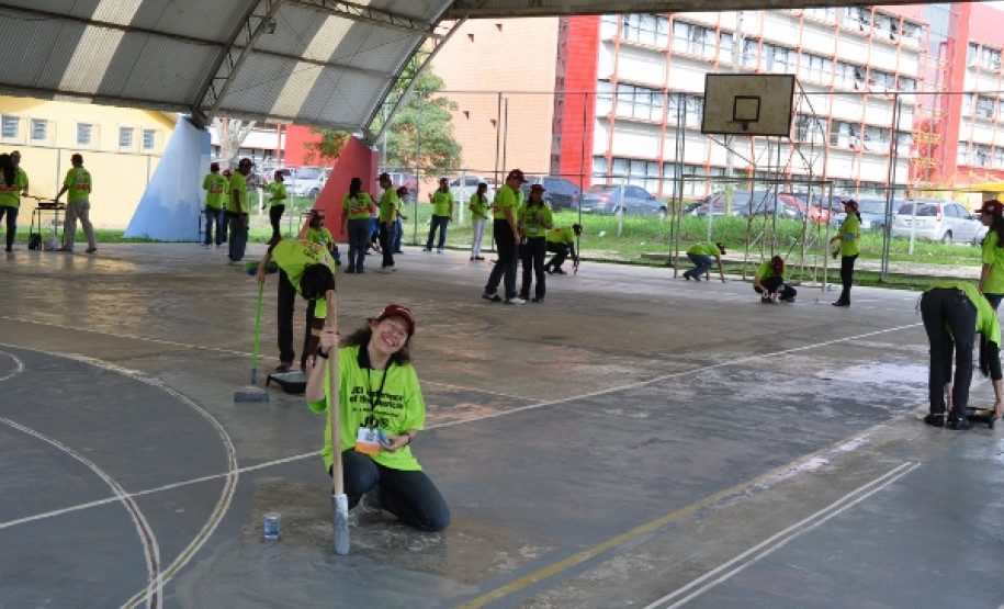 No último sábado (5), o Colégio Estadual Manoel Ribas, em Curitiba, foi cenário de ação voluntária que envolveu cerca de 200 pessoas provenientes de 42 países das Américas, Ásia e Europa. Os voluntários promoveram intercâmbio cultural com a comunidade escolar, trabalharam na revitalização da horta da escola e pintaram a quadra poliesportiva.