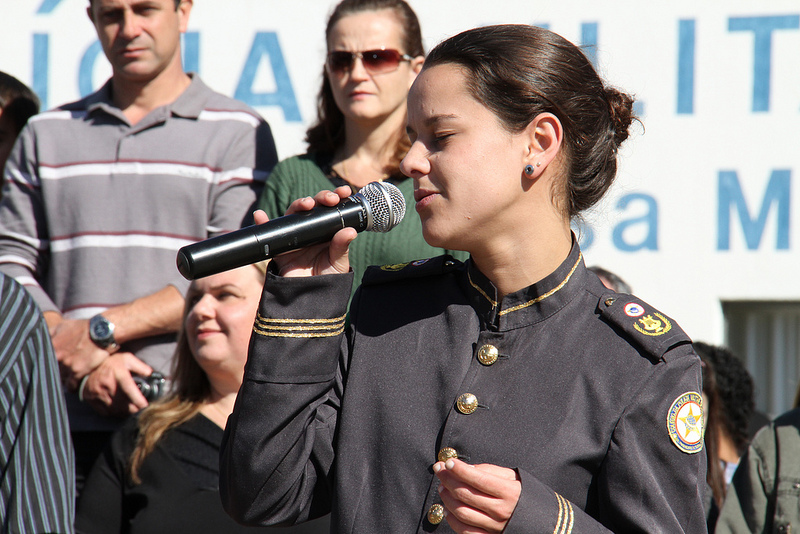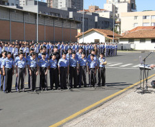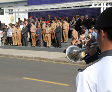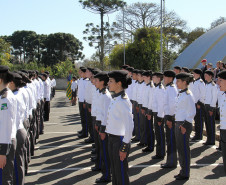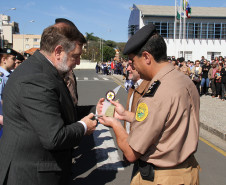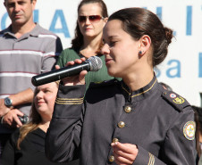 Centenas de pessoas participaram do evento, realizado na própria unidade no bairro Portão, entre alunos, pais, professores, funcionários, oficiais, autoridades e convidados.