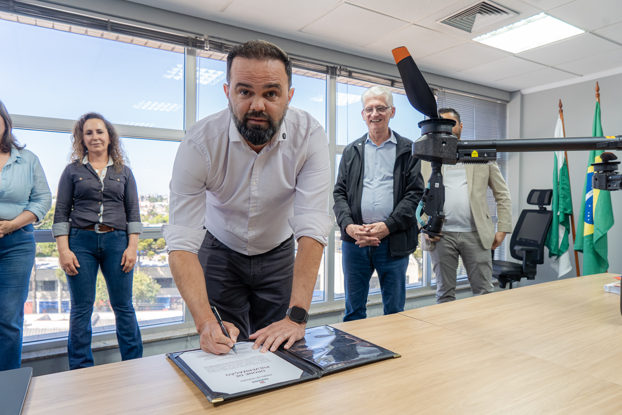A Secretaria de Estado da Educação do Paraná (Seed) realizou, nesta quarta-feira (15), uma solenidade especial para assinatura do termo de doação de um drone de pulverização agrícola destinado ao Centro Estadual de Educação Profissional (CEEP) Arlindo Ribeiro – Colégio Agrícola de Guarapuava.