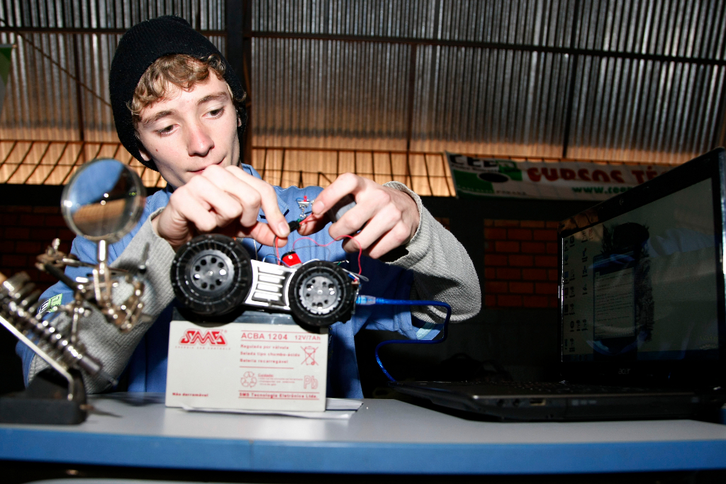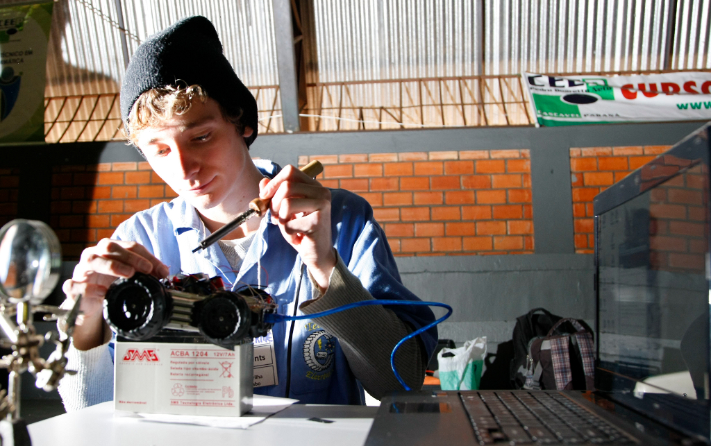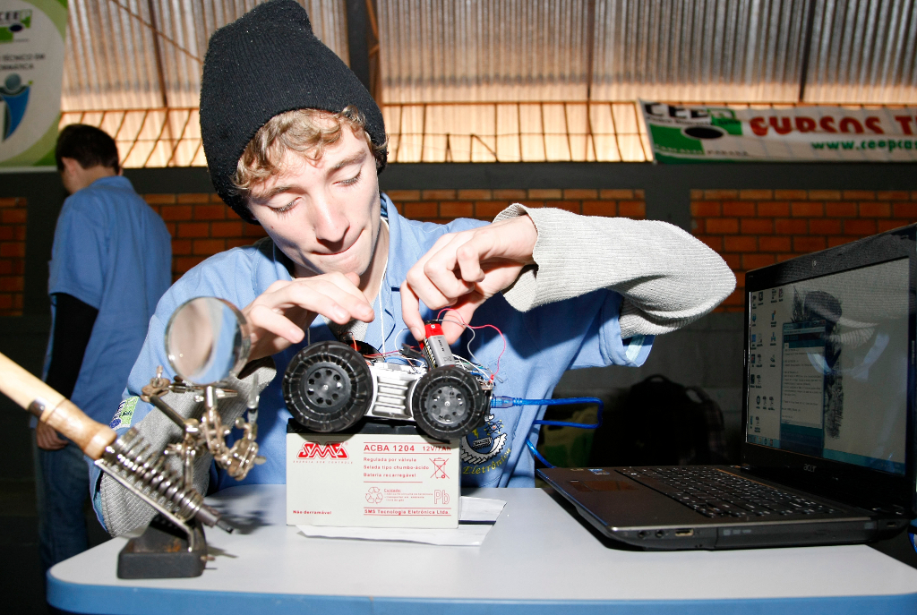 Os cursos técnicos oferecidos pelo Governo do Estado, além de preparar e qualificar os jovens para o mundo do trabalho tem despertado jovens talentos científicos. O aluno Guilherme Biazi Sabin, 15 anos, do 2º ano do curso de eletrônica no Centro Estadual de Educação Profissional Pedro Boaretto Neto, em Cascavel, desenvolveu o robô S1-T1, um carrinho guiado por sensores comandados por computador.