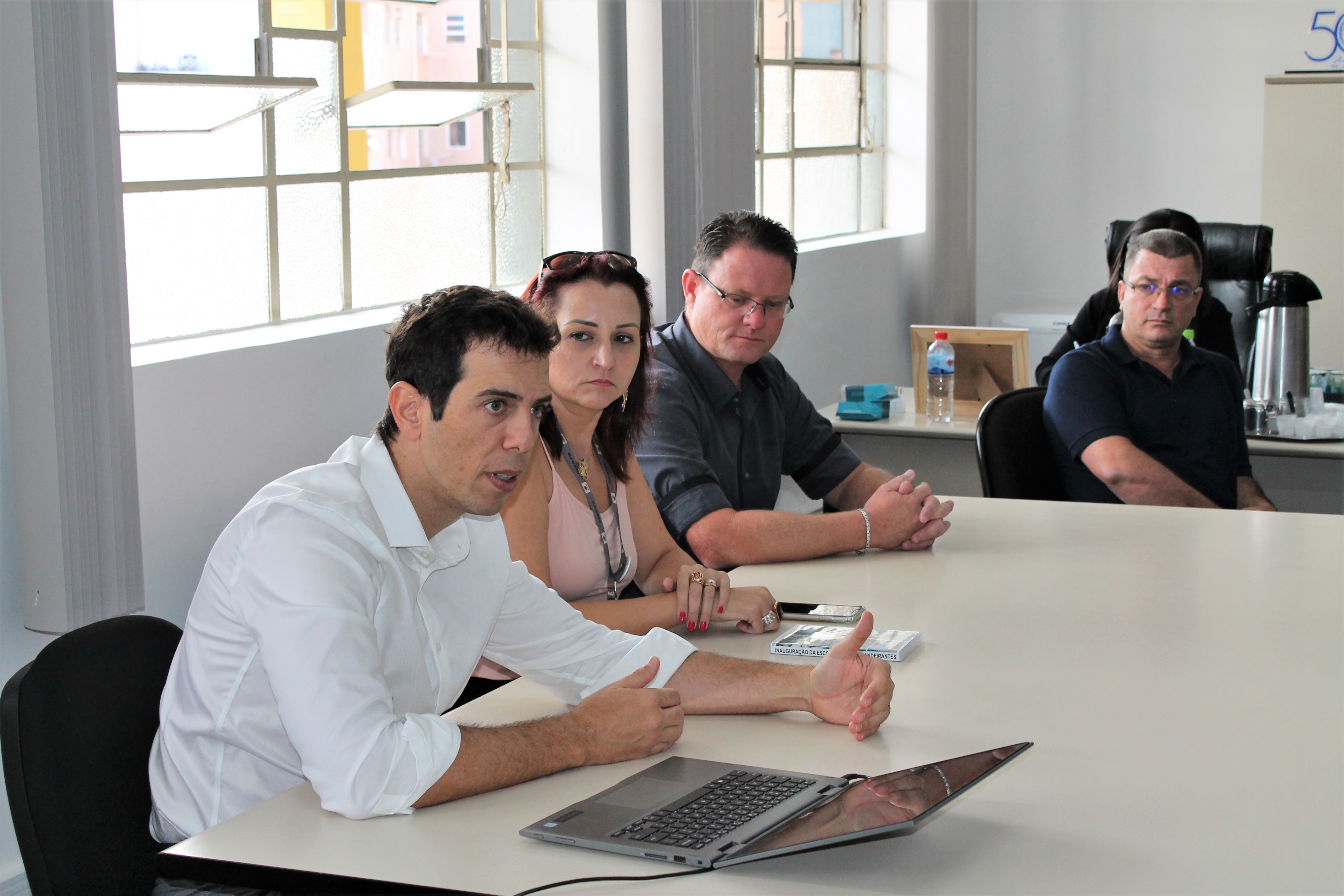 Acompanhados pela chefe do NRE, Debora Zanchettin, os diretores foram recepcionados pelo secretário, pelo diretor-geral, Gláucio Dias, pela diretora de Planejamento e Gestão Escolar, Adriana Kampa, e pela chefe de gabinete, Ângela Mercer de Mello.