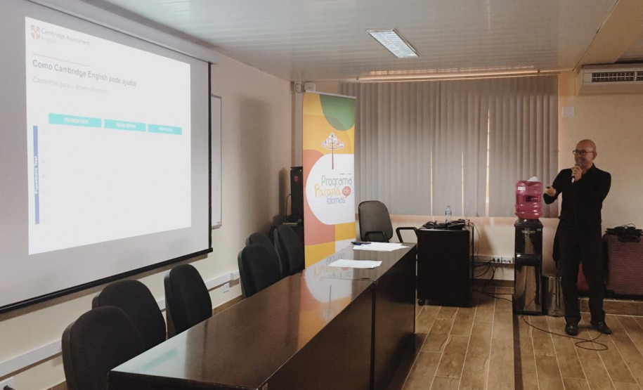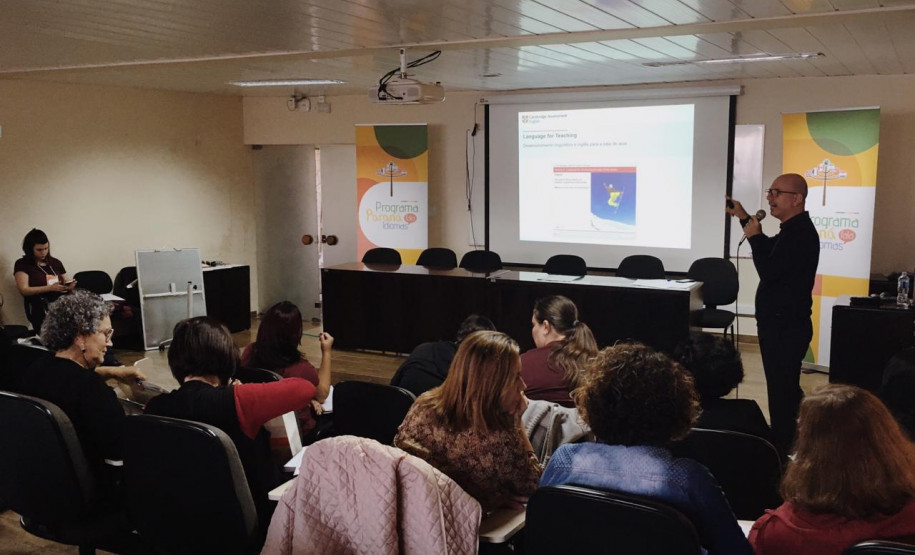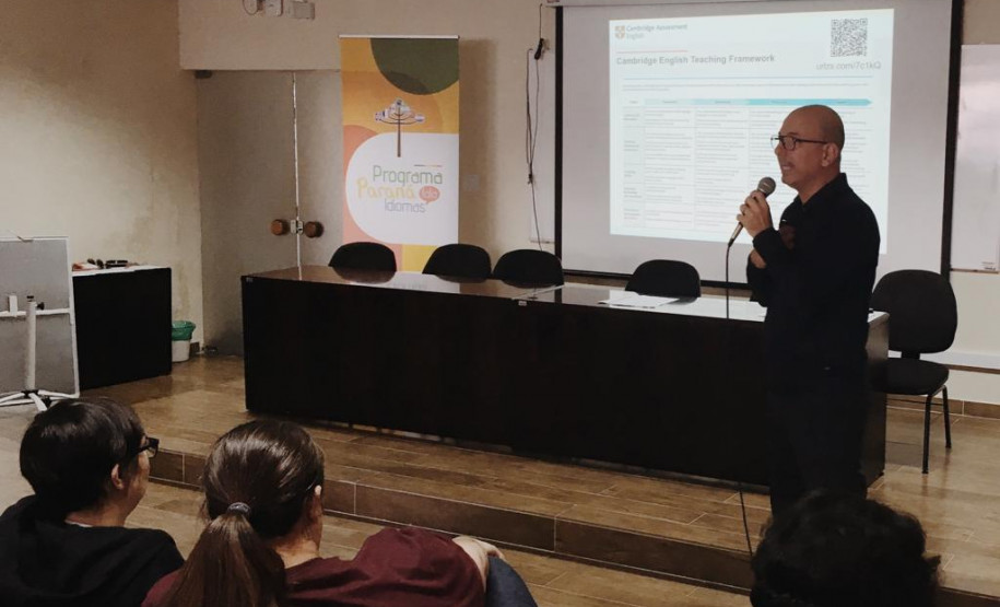 Professores de Língua Inglesa da rede estadual de ensino do Paraná participaram nessa quinta-feira (13), no auditório da Secretaria de Estado da Educação e do Esporte do Paraná (Seed) de um workshop com o consultor especialista em educação internacional da Cambridge Assessment, Hugh Moss. O tema do workshop foi os desafios e impactos do ensino da língua inglesa no Brasil. O evento foi promovido em parceria entre a Seed e a Universidade de Cambridge, por meio do programa Paraná Fala Idiomas, da Secretaria de Estado da Ciência, Tecnologia e Ensino Superior.