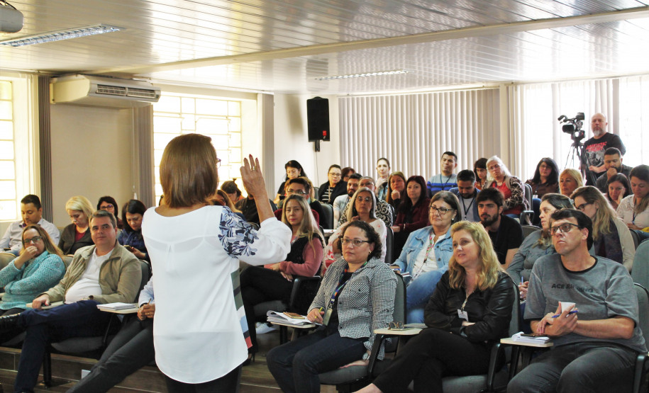 Com o auditório lotado, o secretário de Estado da Educação e do Esporte, Renato Feder, e os servidores da pasta receberam, nesta segunda-feira (25), em Curitiba, a professora Maria Helena Guimarães, conselheira do Conselho Nacional de Educação (CNE).