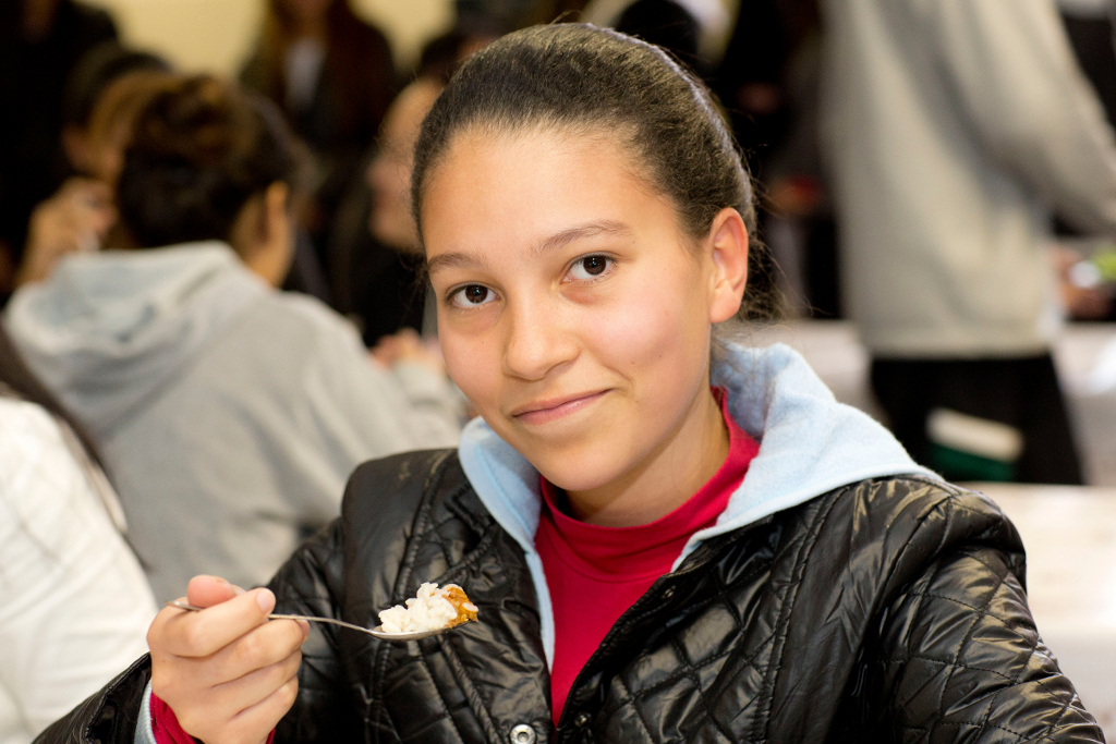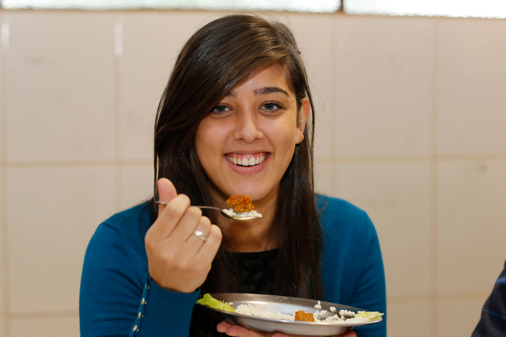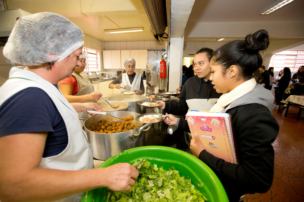 A merenda servida na escola nesta quinta-feira (12) foi um almoço bem reforçado com arroz, feijão, saladas e almôndegas ao molho. “É muito importante ter uma alimentação reforçada na escola porque muitos alunos saem daqui e vão direto para o trabalho e só voltarão a se alimentar bem novamente à noite”, contou a aluna Ana Claudia, 18 anos, do 3° ano do ensino médio, que estuda pela manhã e trabalha no período da tarde.