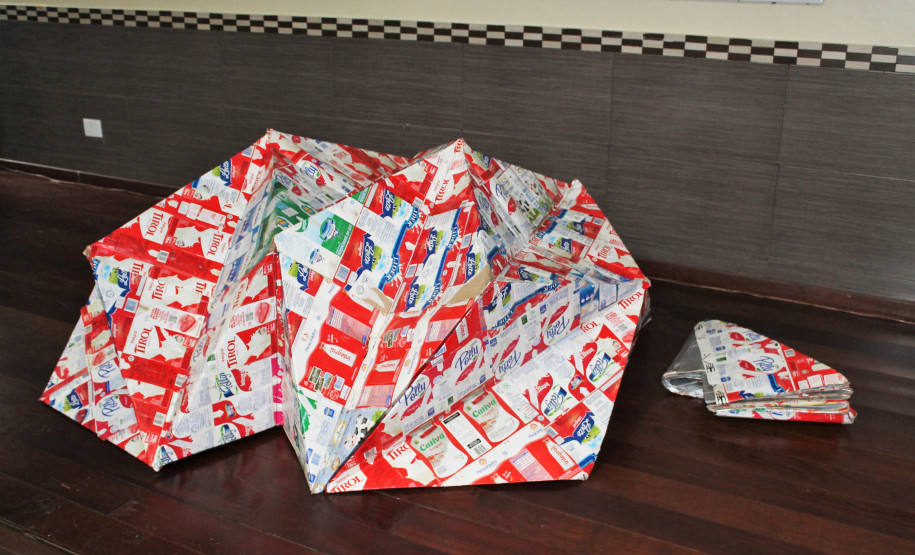 “A caixinha é feita de [plástico] polietileno, papelão e alumínio. A gente corta as embalagens num tamanho padrão e, quando temos a quantidade necessária, sobrepomos uma na outra. Com o auxílio de um paninho e um ferro de passar roupas ligado, com muito cuidado, unimos as caixinhas, já que o calor do ferro derrete o plástico e faz as vezes de cola”, explica, garantindo que com a técnica não há o risco de deixar frestas no abrigo.