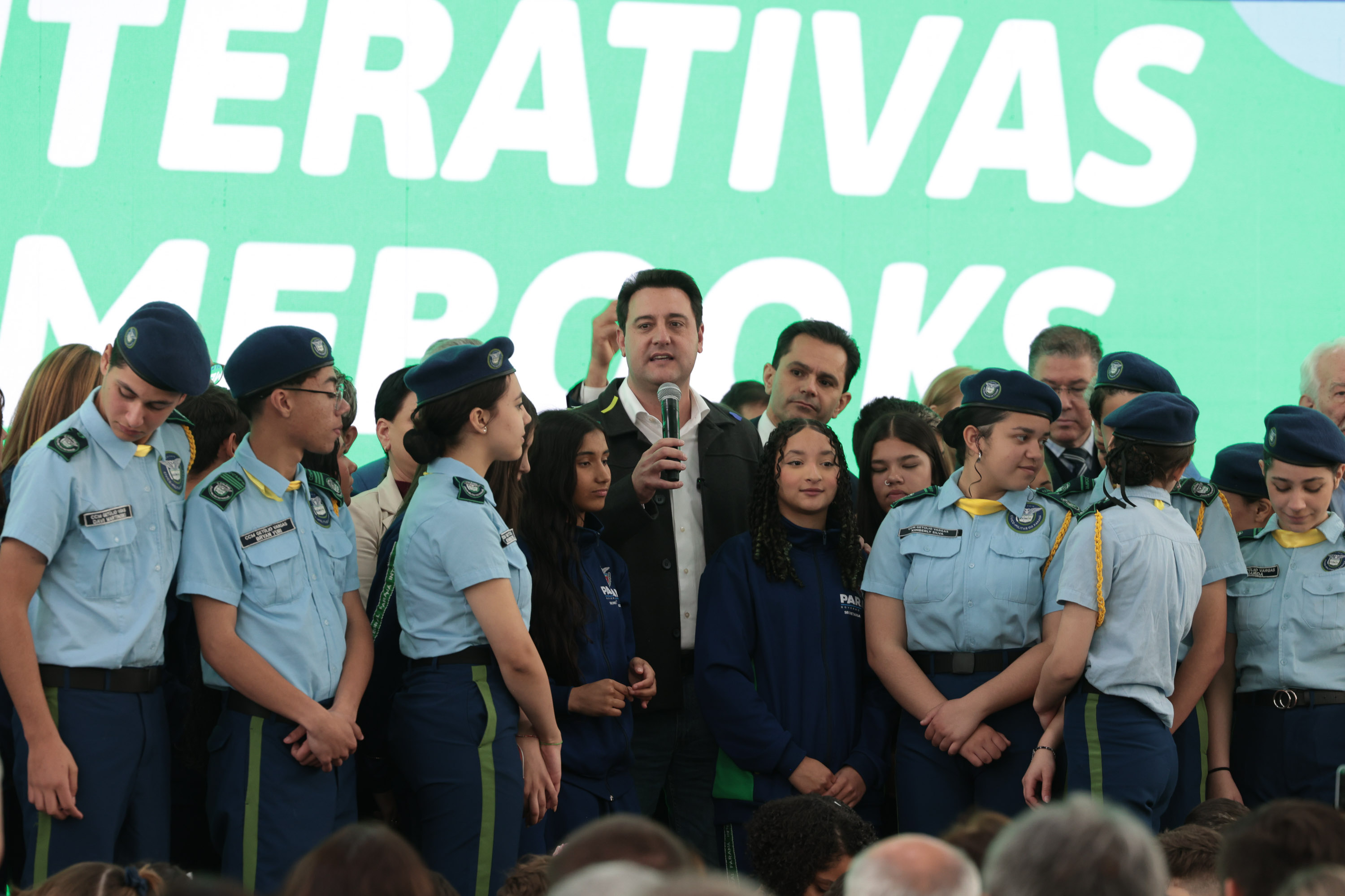 PRESENÇAS – Também participaram do evento o vice-governador Darci Piana; o chefe da Casa Civil, João Carlos Ortega; os secretários estaduais da Administração e Previdência, Luizão Goulart; Trabalho, Qualificação e Renda, Do Carmo; a presidente do Fundepar, Eliane Carmona; o presidente da Assembleia Legislativa do Paraná (Alep), Alexandre Curi; o líder do Governo na Alep, deputado estadual Hussein Bakri; os deputados estaduais Cloara Pinheiro, Flávia Francischini, Gugu Bueno, Jairo Tamura, Maria Victoria, Anibelli Neto, Nelson Justus, Moacyr Fadel, Marcio Pacheco, Alisson Wandscheer, Márcia Huçulak, Marli Paulino, Delegado Jacovós, Pedro Paulo Bazana, Evandro Araújo, Doutor Leônidas, Gilberto Ribeiro, Alexandre Amaro, Luiz Fernando Guerra, Ney Leprevost e Adão Litro; a deputada federal Luísa Canziani; prefeitos, vice-prefeitos, secretários municipais e vereadores de dezenas de municípios.