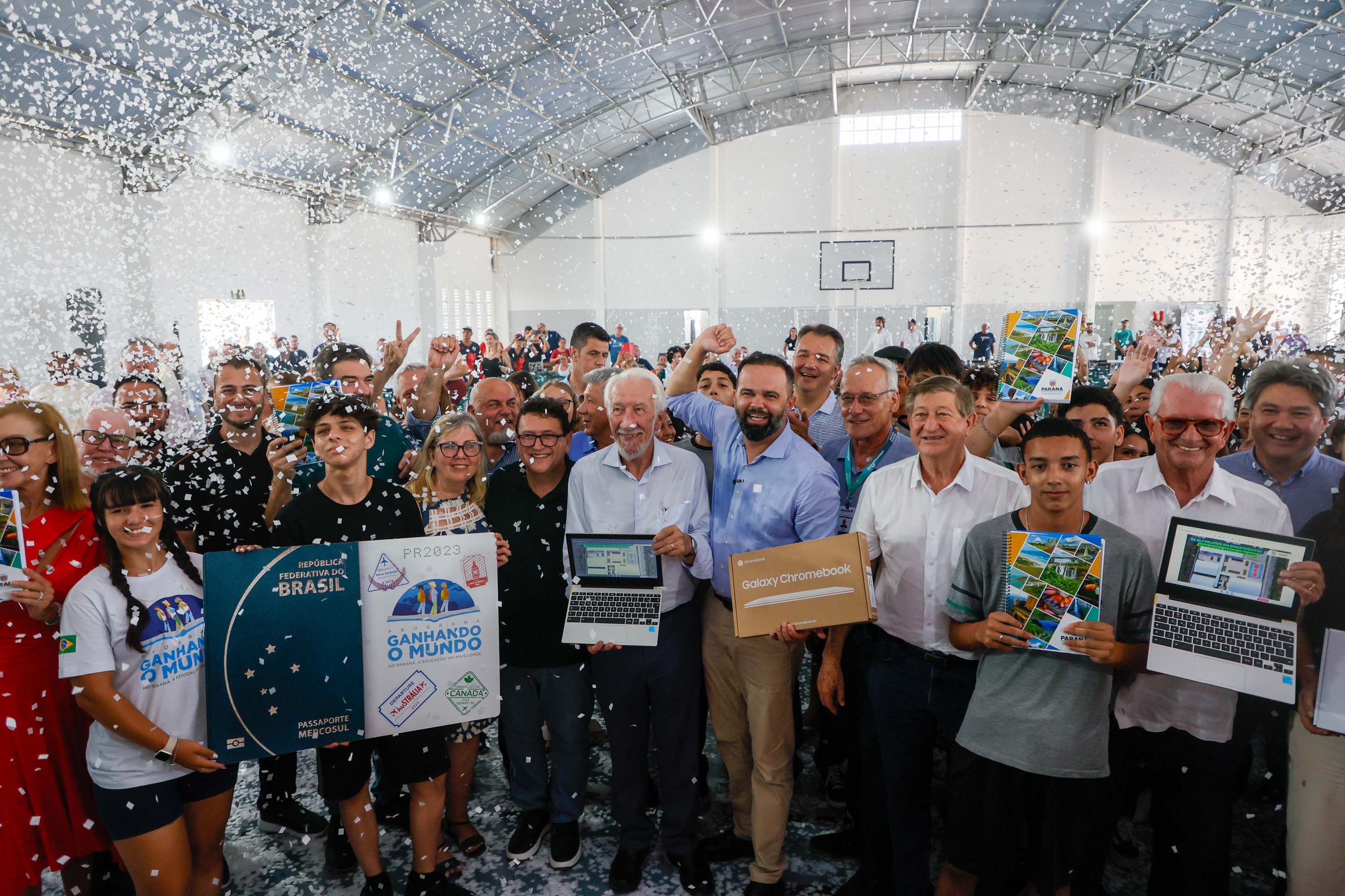 O evento também foi marcado pela entrega simbólica de 1.159 chromebooks para o Núcleo Regional de Educação de Paranaguá, como parte dos 32 mil chromebooks adquiridos pelo Governo do Estado. Iniciada em fevereiro, a distribuição dos equipamentos beneficiará mais de mil escolas em todo o Paraná. Eles serão utilizados para atividades pedagógicas, projetos interdisciplinares e acesso a plataformas educacionais, contribuindo para a melhoria do desempenho dos alunos e a integração de ferramentas digitais no cotidiano escolar.