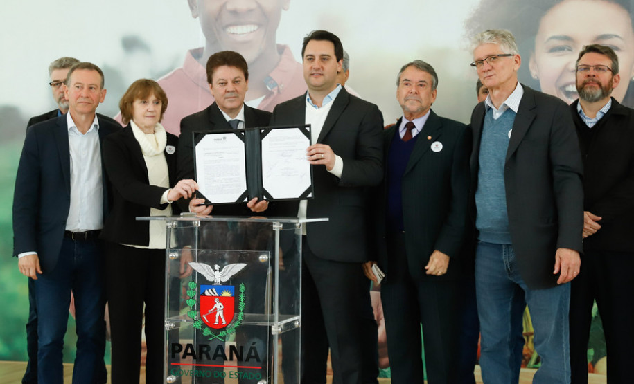 PRESENÇAS - Participaram da solenidade o vice-governador Darci Piana; o chefe da Casa Civil Guto Silva; o procurador de Justiça Olympio de Sá Sotto Maior Neto; o superintendente da Ciência, Tecnologia e Ensino Superior, Aldo Bona; os presidentes do Banco Regional de Desenvolvimento do Extremo Sul (BRDE), Wilson Bley; da Fomento Paraná, Heraldo Neves; do Tecpar, Jorge Callado; e do Conselho Estadual de Segurança Alimentar e Nutricional (Consea), Roseli Pittner; e os deputados estaduais Hussein Bakri (líder do governo na Assembleia), Nelson Luersen, Evandro Araújo, Professor Lemos, Élio Rush, Luciana Rafagnin, Emerson Bacil, Anibelli Neto, Goura, Marcel Micheletto.
