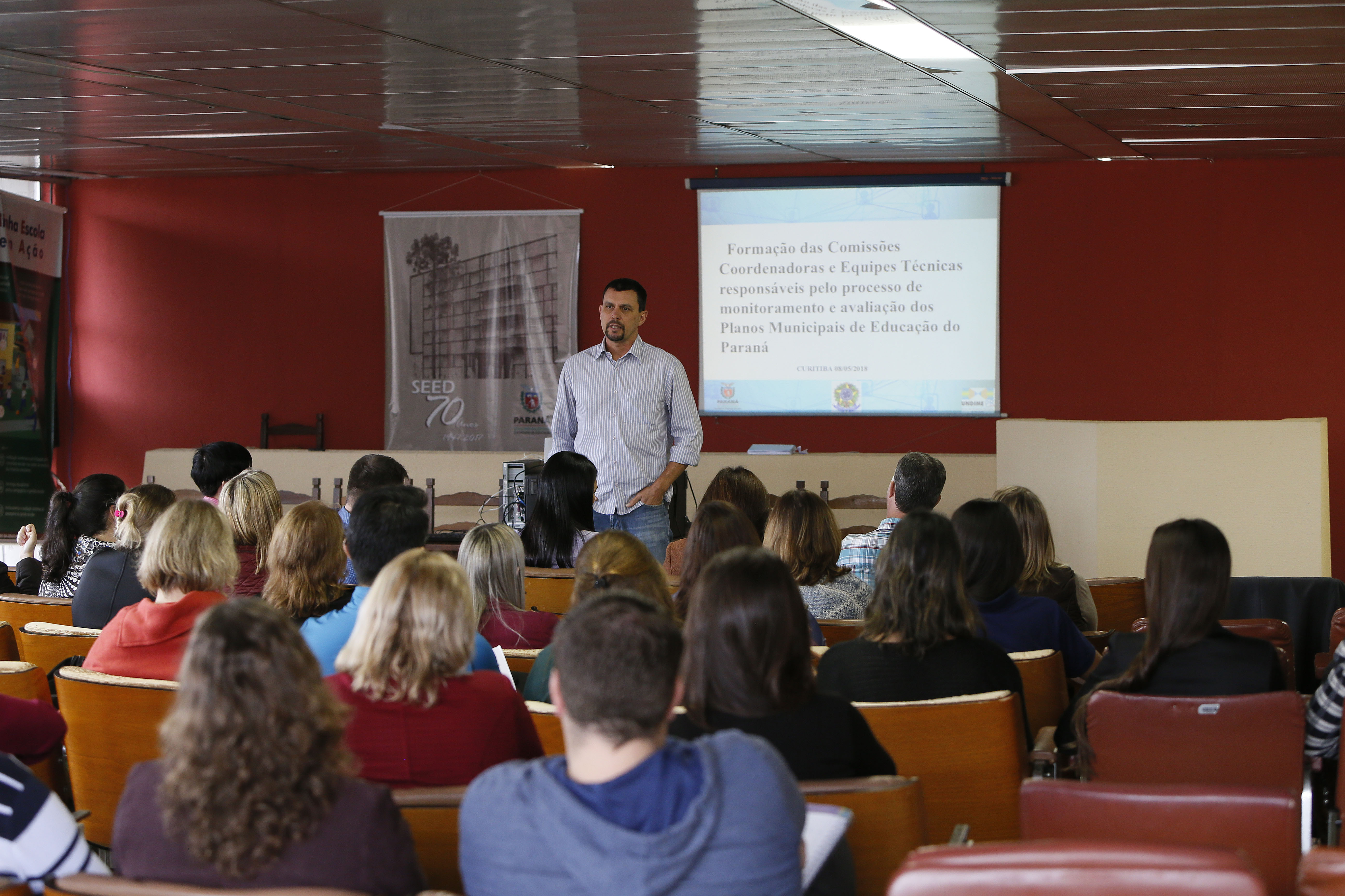 Representantes das Comissões Coordenadoras e Equipes Técnicas de Curitiba e outros 14 municípios da Região Metropolitana iniciaram nessa terça-feira (8), na capital, o curso de formação para Avaliação dos Planos Municipais de Educação. A primeira fase da formação encerra no próximo dia 15. Já a segunda etapa acontece entre o dia 21 desse mês e oito de junho contemplando todos os 399 municípios do Paraná.