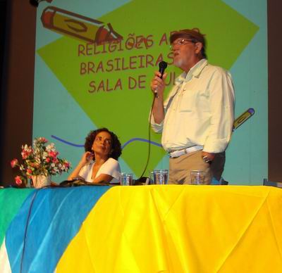A abertura do evento contou com a exibição do filme “Vista Minha Pele”, de Joel Zito, e palestras do professor Sérgio Paulo Adolfo (foto), da Universidade Estadual de Londrina (UEL), que falou sobre religiosidade afro-brasileira na Escola, e da professora Giselda Melo do Nascimento, também da UEL, que expôs noções de literatura e cultura francófona. Estiveram presentes alunos dos cursos de magistério e professores da rede municipal, estadual e privada, além de representantes de movimentos negros. O vice-prefeito Antonio Waldemar Garcia e a chefe do NRE, Vanda Pedroso de França, também estiveram presentes. Em discurso, Vanda ressaltou a importância das políticas públicas da SEED para a questão étnico-racial.