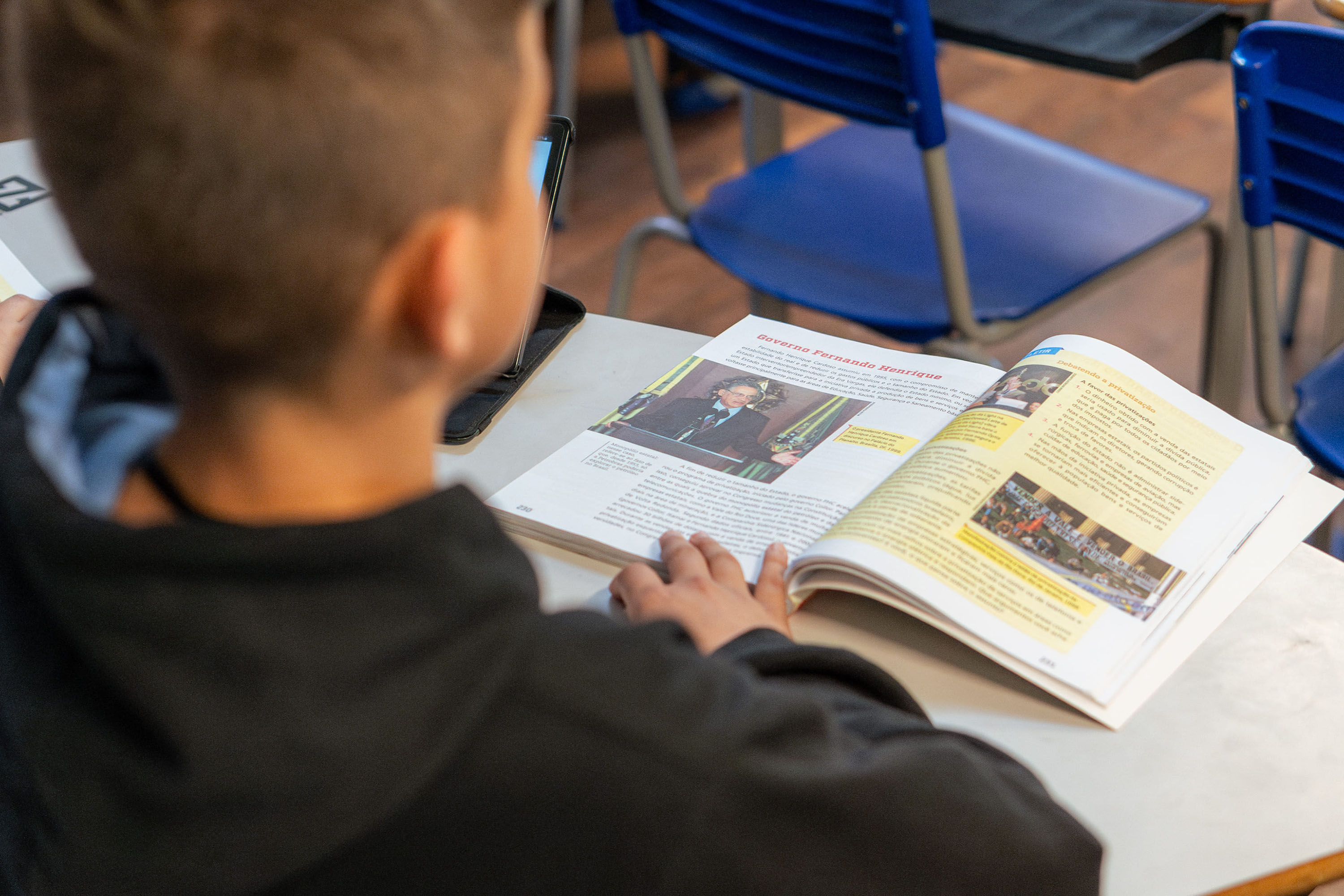 A existência de biblioteca é requisito obrigatório para o funcionamento das escolas. Por isso, além da estrutura, a rede desenvolve ações que aproximam a literatura da realidade dos estudantes, com atividades pedagógicas que incentivam o hábito da leitura e o protagonismo juvenil.