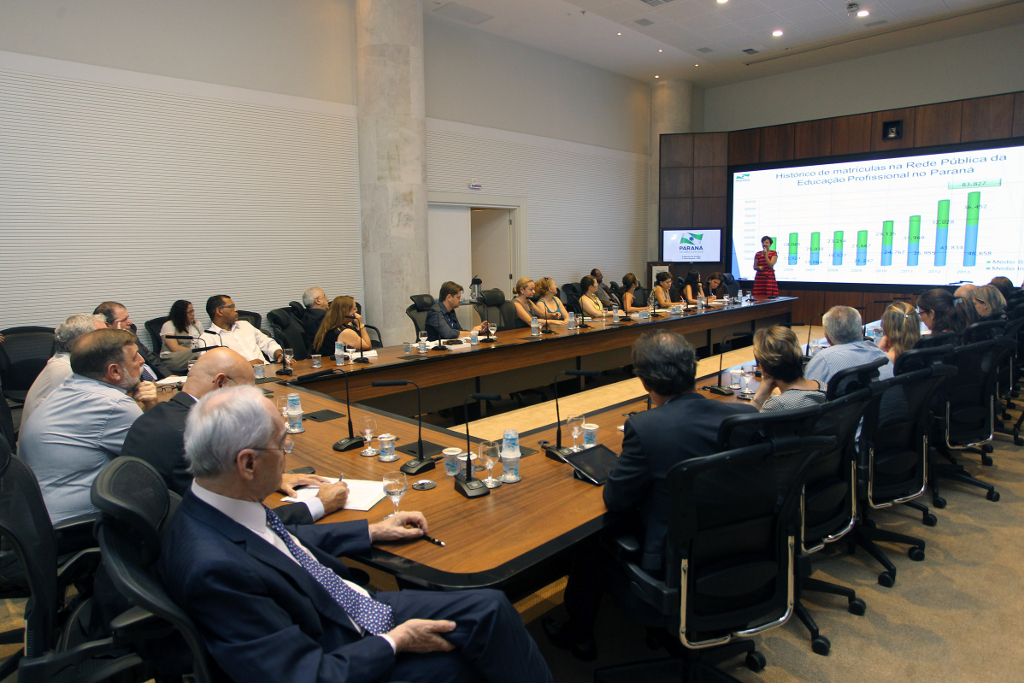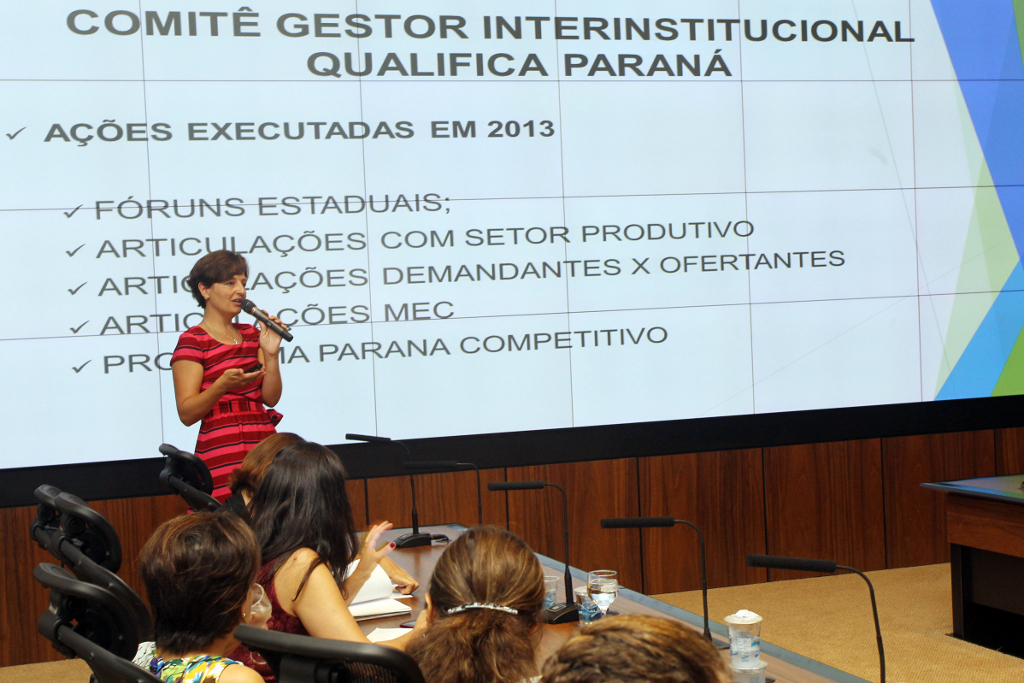 Representantes do Comitê Gestor Interinstitucional Qualifica Paraná, que faz a gestão de todos os programas na área de qualificação profissional no Estado, reuniram-se nesta segunda-feira (03), no Palácio Iguaçu, para avaliar as ações realizadas no ano passado e traçar as perspectivas de trabalho para o ano de 2014, especialmente com relação às ações no Paraná do Programa Nacional de Acesso ao Ensino Técnico e Emprego (Pronatec).