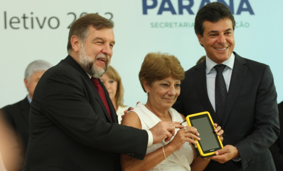 NOVAS TECNOLOGIAS – Parte do investimento integra um projeto para implantar novas tecnologias para a educação no Paraná. Inicialmente, professores do ensino médio vão receber aproximadamente 32 mil tablets e serão capacitados para usar os aparelhos em sala de aula, com acesso à internet. O equipamento permite fazer o registro de classe e o lançamento de notas on-line, além de facilitar a consulta a livros e outros conteúdos digitais.