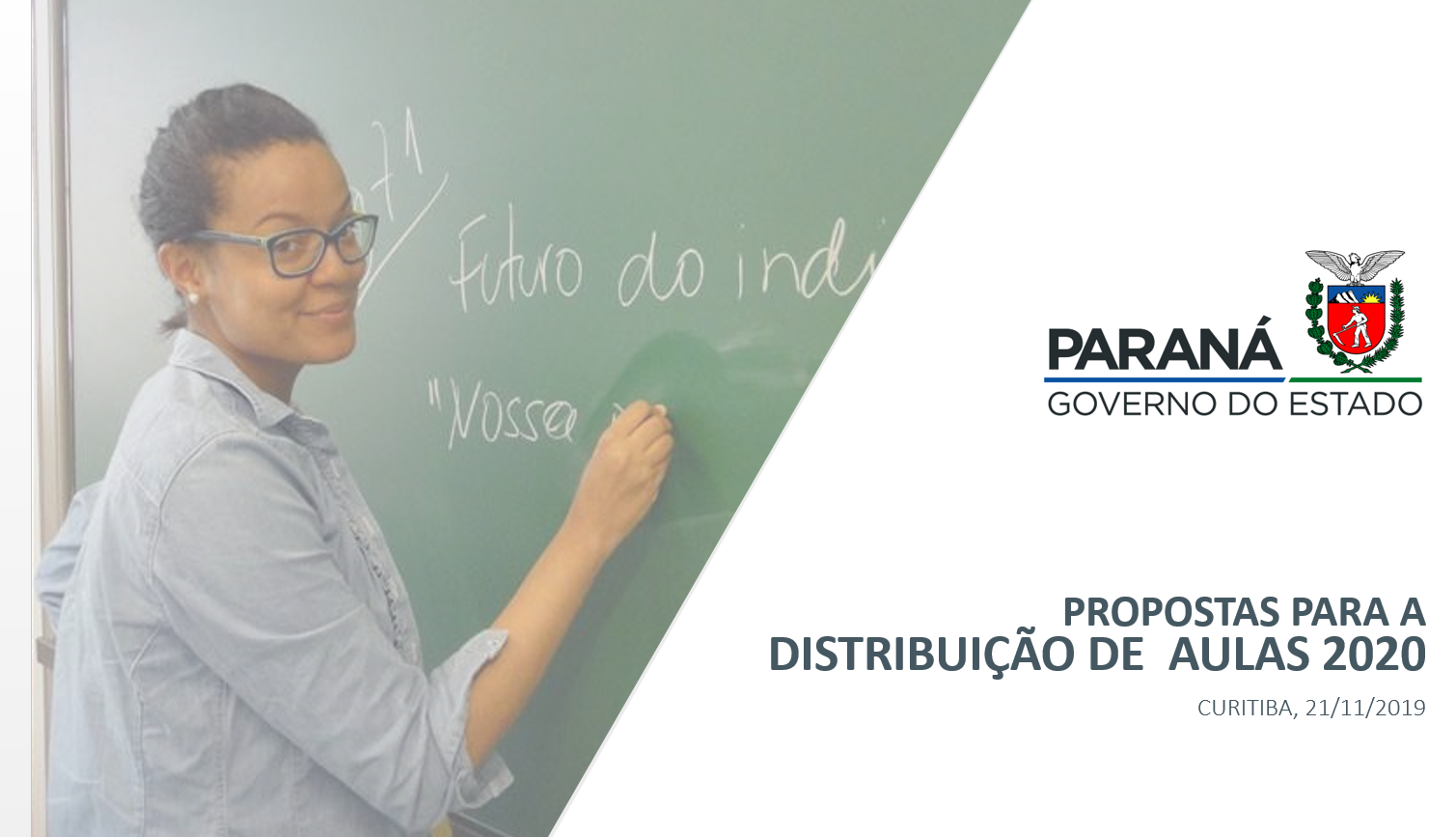 A Secretaria de Estado da Educação e do Esporte (Seed) apresentou hoje, em uma web-live, a proposta para mudança das regras para a distribuição de aulas para o ano letivo de 2020. As alterações têm como objetivo concentrar o professor no menor número de escolas possível. Hoje, o professor paranaense trabalha em média em três escolas.